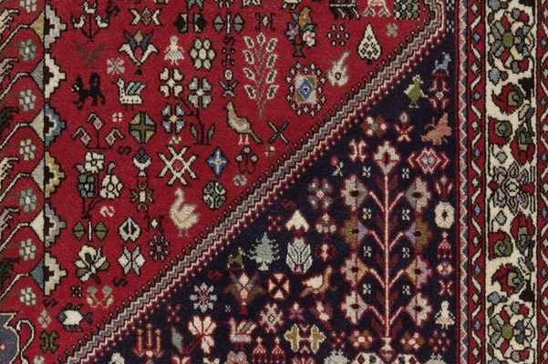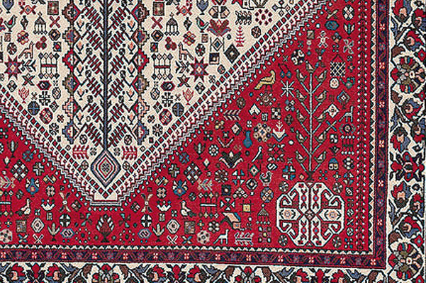 Während der Durchreise im Sommer schlagen viele Ghashghayi-Nomaden in der Gegend um Abadeh ihre Lager auf und werden mitunter auch dauerhaft sesshaft. Ihr Einfluss auf die Teppiche ist an der Synthese aus den Mustern der Ghashghayi und Khamseh erkennbar. Stilisierte Motive von Katzen, Hähnen, Hunden, Blumen, Blättern oder Bäumen sind sehr typisch für die Teppiche aus dem Fars-Gebiet.