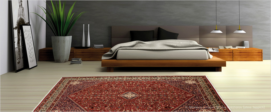 Die meisten Knüpfer verarbeiten ihre persönlichen Impressionen aus Leben und Alltag zu eindrucksvollen Dessins. Mitte und Ecken ziert für gewöhnlich ein großes Sechseck mit einem filigranen Medaillon oder einer Rosette, das Innenfeld ist ausgefüllt mit Bildnissen aus der Tier- und Pflanzenwelt. Jedes Detail des so genannten Hebatlu-Musters kommt durch warme Rottöne, Beige sowie hellem oder dunklem Blau eindrucksvoll zur Geltung.