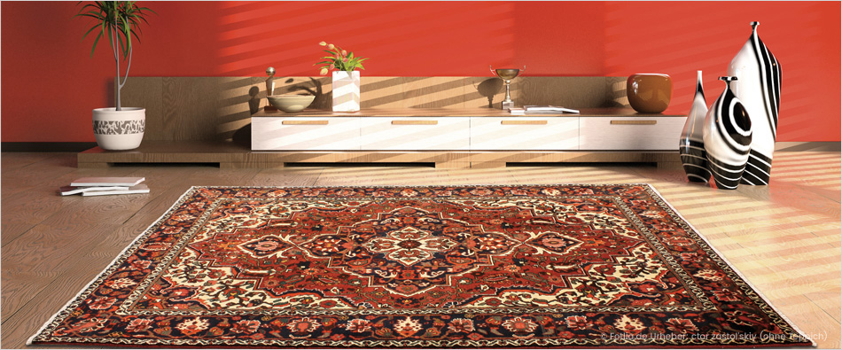 Der in kräftigem Rot mit blauen, grünen und cremefarbenen Einschlüssen gehaltene und überschwänglich mit Mustern und Formen versehene Bakhtiar wirkt zuweilen etwas schwer und sollte einen lichten Platz bekommen. So kommt auch sein sehr schöner Glanz, der auf die hochwertige und fetthaltige Wolle zurückzuführen ist, besonders zur Geltung. Nach und nach bekommt die Wolle einen besonderen Schliff, denn die Teppiche reifen mit den Jahren noch nach.