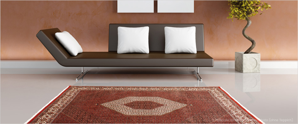Ein außergewöhnliches Stück ist der Bidjar mit Seide. Die Konturen der aufwändigen Muster sind aus Seide, was dem Teppich bei Lichteinfall einen besonderen Glanz verleiht und die Formen noch stärker hervortreten lässt. In Persien nennt man dieses Kunstwerk „Gol Abrisham“, was übersetzt Seidenblume bedeutet.