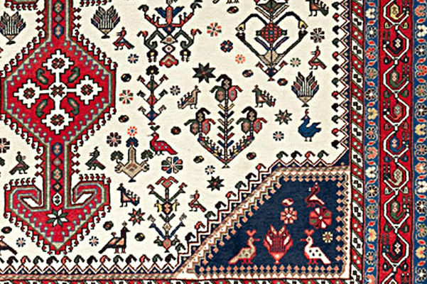 Geographisch liegt Nasrabad mit seinen etwa 200 Einwohnern in einem Dreieck zwischen Isfahan im Norden, der Fars-Region im Südosten und der Bakhtiari-Region im Westen. Dort wird überwiegend nach dem so genannten Ghashghayi-Muster geknüpft: Den Schwerpunkt bildet meist ein schlichtes, lang gestrecktes Medaillon aus Blüten, Rosetten oder auch kleinen Tieren auf rotbraunem Grund. In Kombination mit beigen und blauen Farbelementen wirkt der Nasrabad sehr vornehm und auch dezenter als manch anderer Perserteppich.