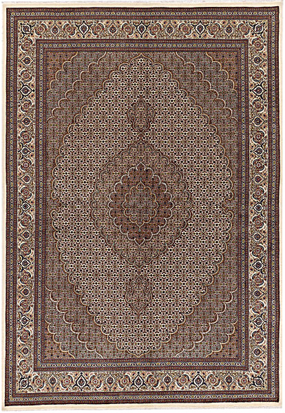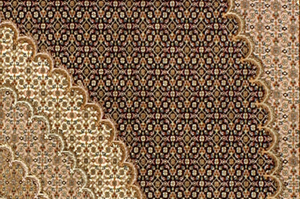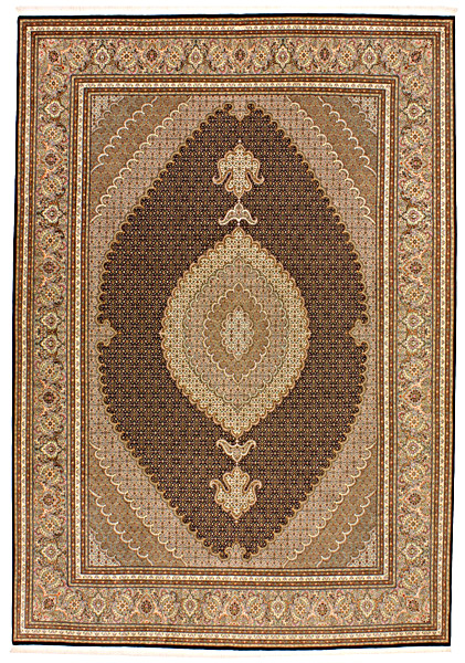 Tabriz-Teppiche haben eine lange Tradition. Aus dieser Provenienz kommen die meisten Muster und Güteklassen. Typisch für die Qualität des Tabriz sind die Verwendung sehr feinen Garns und eine gleichmäßige und sehr akurate Knüpfung mit türkischem Knoten. Das lässt die Muster mitunter gestochen scharf erscheinen. Unverkennbar ist auch die ungewöhnlich breite Farbpalette – insbesondere die verwendeten Grüntöne, die oft stark und ausdrucksvoll hervortreten. Kein anderer Teppich hat sich im Laufe der Jahre dem Wandel der modischen Stilrichtungen so angepasst wie der Tabriz.