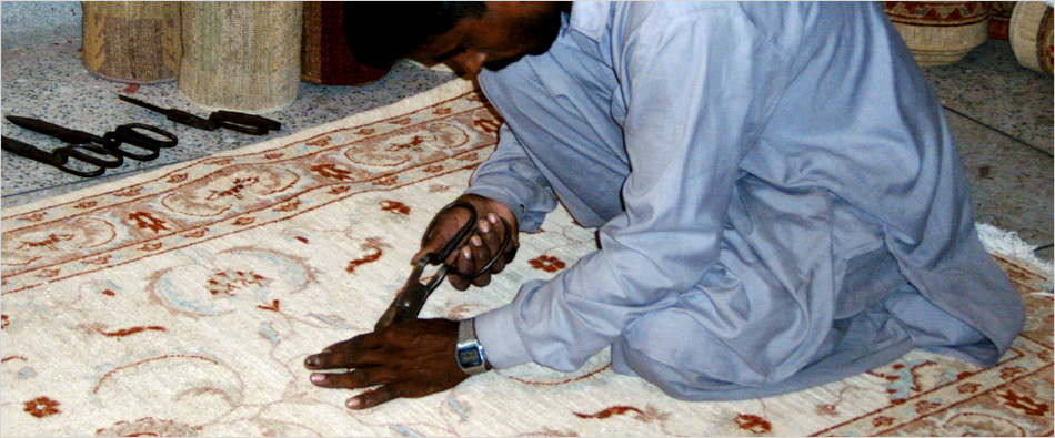 In unserem Hause wird SERVICE groß geschrieben: Unsere Teppiche werden in der Wäscherei gereinigt und eingehend überprüft: in ihrem Gesamterscheinungsbild, sowie Sauberkeit, Fleckenfreiheit, Zustand des Flors und der Schur, Kanten, Fransen und die Maßgenauigkeit. Was fehlerhaft oder schief, krumm oder wellig ist, fliegt raus.