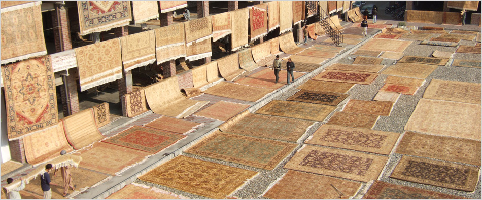 Neu, Alt- und Antikteppiche werden in der Werkstatt restauriert, beziehungsweise für den Export aufbereitet.